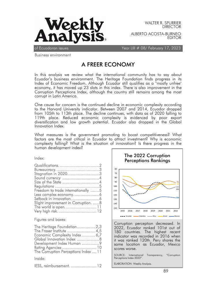 Grupo Spurrier is the leading company in the provision of strategic information on economic and political issues regarding Ecuador, which we monitor through Weekly Analysis and Análisis Semanal. We specialize in economic research, competition advice, market research, business plans, and workshops in economic scenarios and regulatory changes.