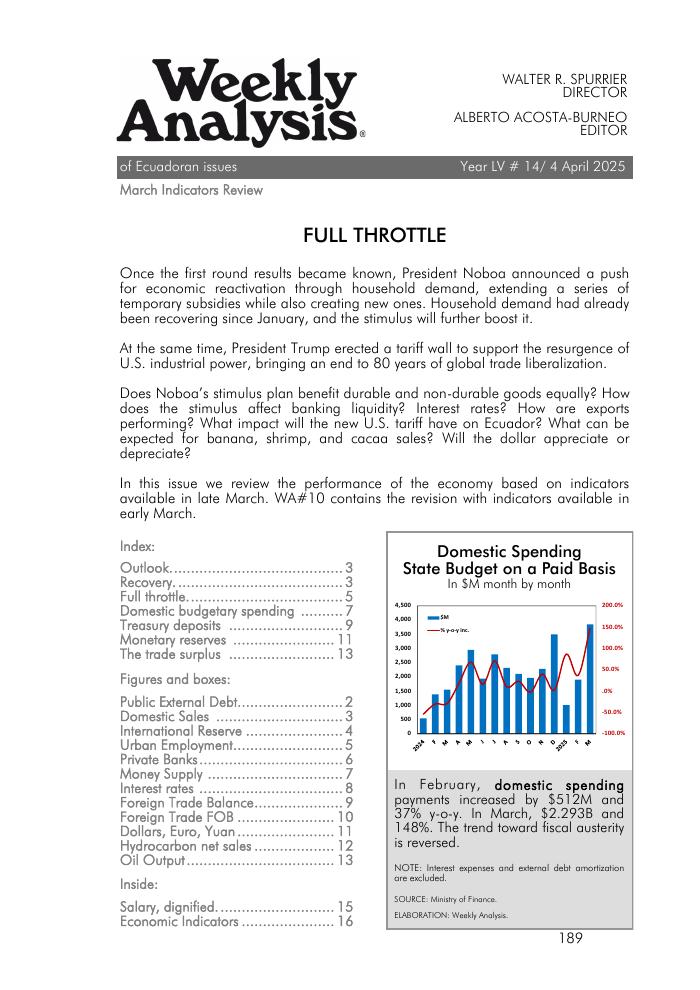 The president suffered a major setback in the referendum. But, making the best of a bad situation, the government will not face another crucial electoral test until the end of the administration in 2029 and this it may postpone the paternalistic policies that dominated its first two years, focusing instead on initiatives that can boost investment growth. The year closes with strong consumer spending, which should push growth above the official 3.8% forecast. How much have sales grown, and which activities show the strongest momentum? How will inflation end the year? Why has the trade balance surplus narrowed? Is credit available or not, and at what rates? How are budget arrears to local governments and suppliers evolving? In this issue we update our review of the economy’s performance based on the indicators available as of mid-November. WA#43 contains the review with the indicators available at the end of October.